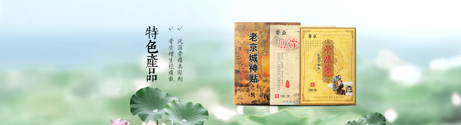 公司主要從事貼劑、膏藥、粉劑及醫(yī)療衛(wèi)生材料等多種劑型生產(chǎn)銷售。主導(dǎo)產(chǎn)品有:骨質(zhì)增生袪痛貼、肩周炎一貼靈、安痛貼[系列]、偏癱威靈貼、腳氣百分百、兩面針抗菌液、痛經(jīng)百消貼、乳腺增生百消貼、無(wú)痕燒傷膏、等二十多個(gè)產(chǎn)品。